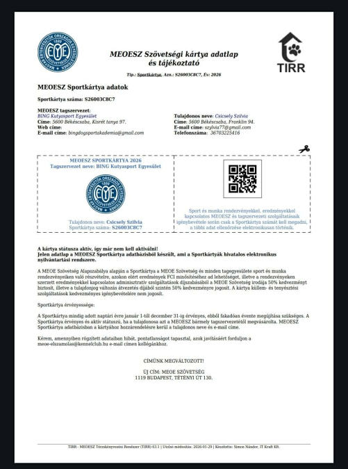 MEOE szövetségi kártya száma