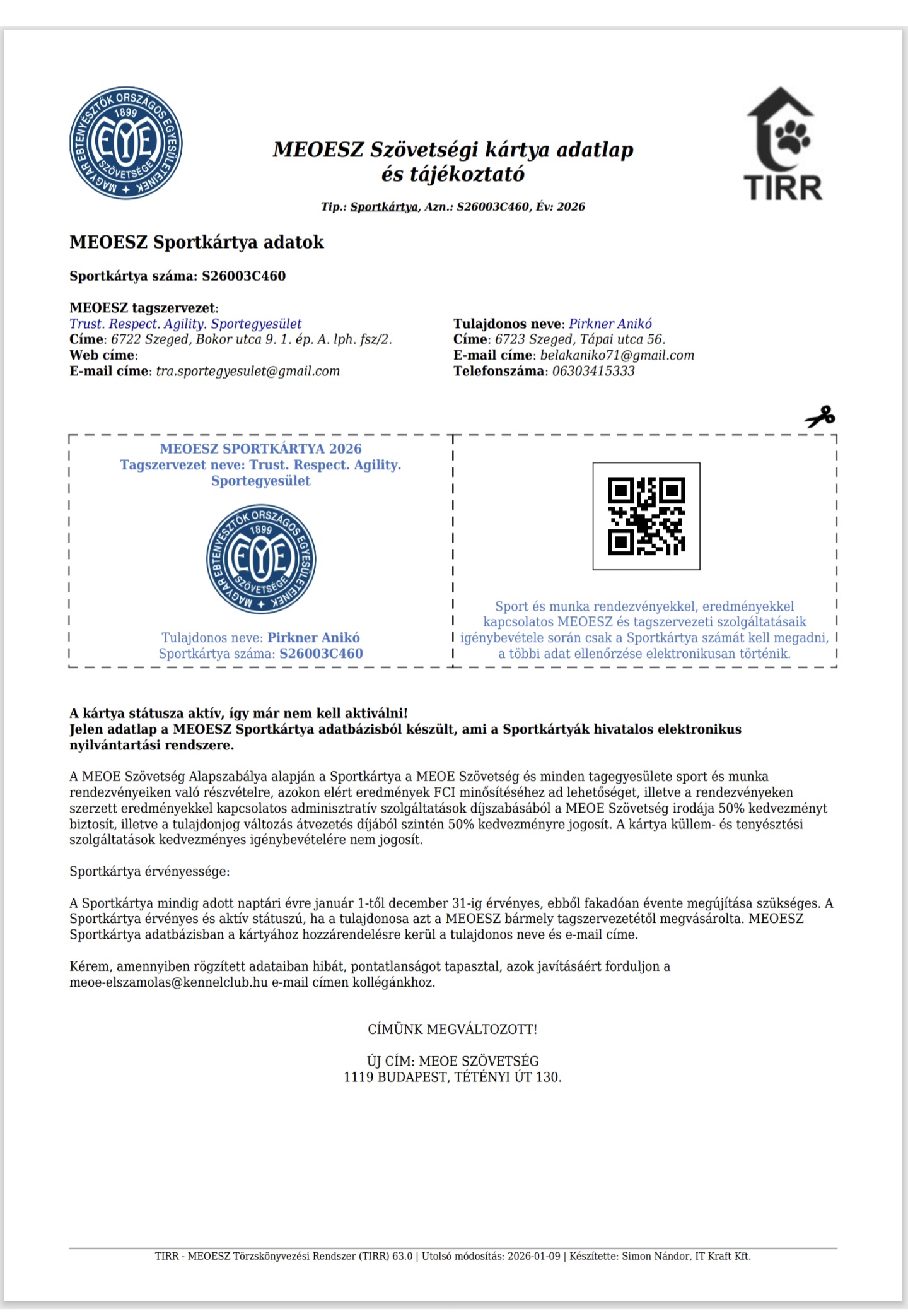 MEOE szövetségi kártya száma