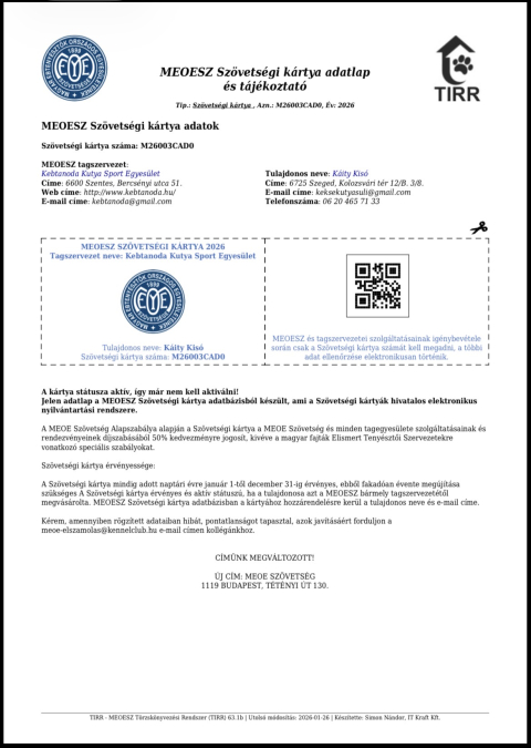 MEOE szövetségi kártya száma