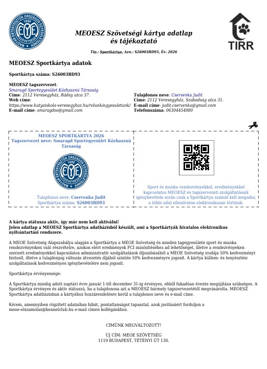 MEOE szövetségi kártyát kiadó egyesület
